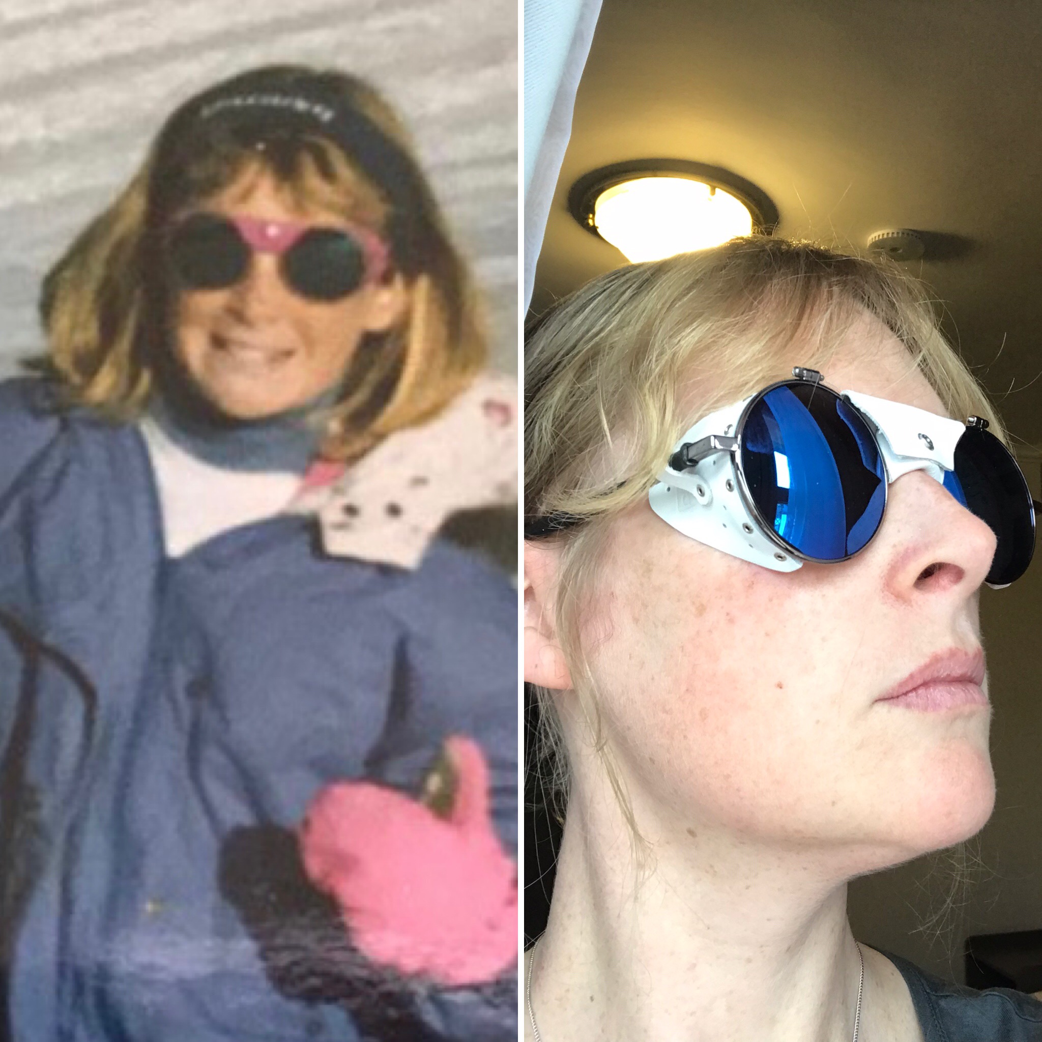 The sunglasses I’m taking with me are of the side-shield variety. As you can see in the photo on the left, I rocked this look when I was 9 and am not about to let a little thing like fashion-sense stop me now!